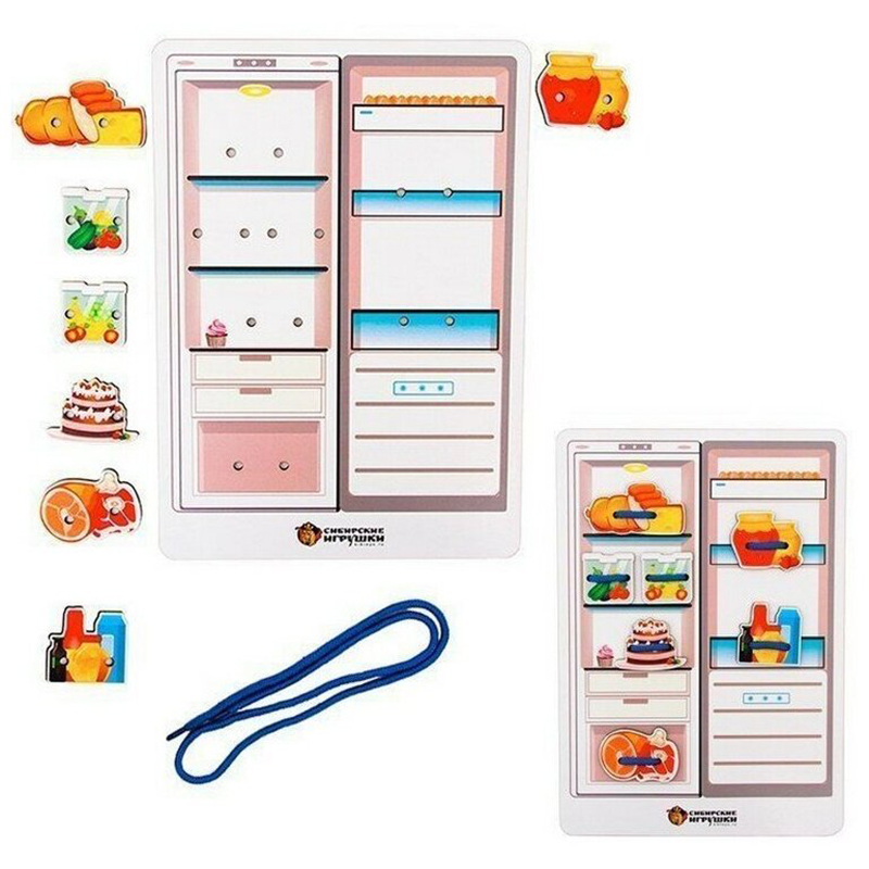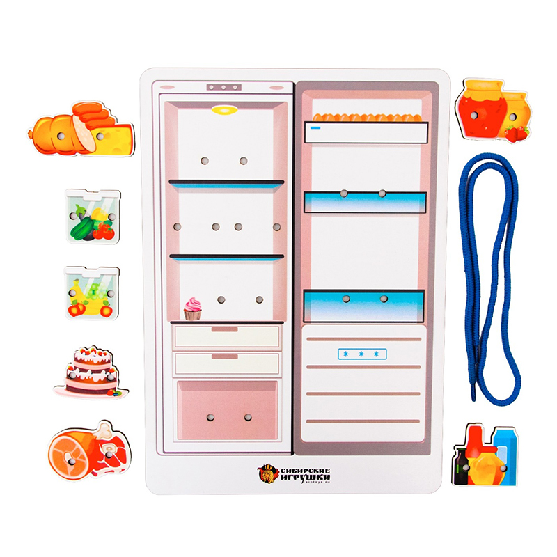Деревянная панель с изображением холодильника и отверстиями для продевания шнурка – 1 шт;