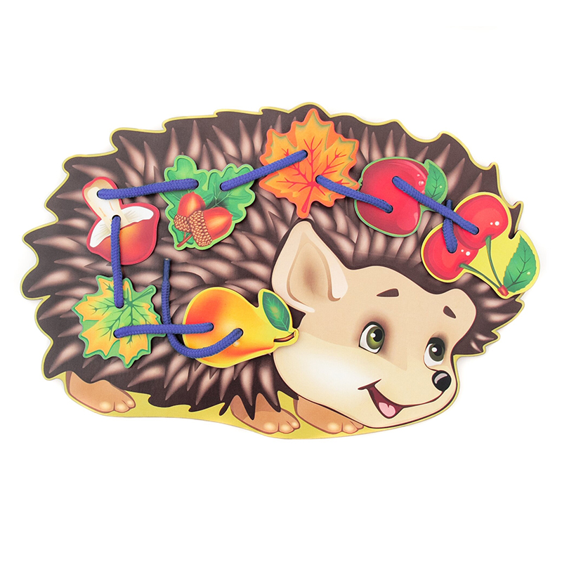 Деревянная панель в виде Ёжика с отверстиями для продевания шнурка – 1 шт.;
