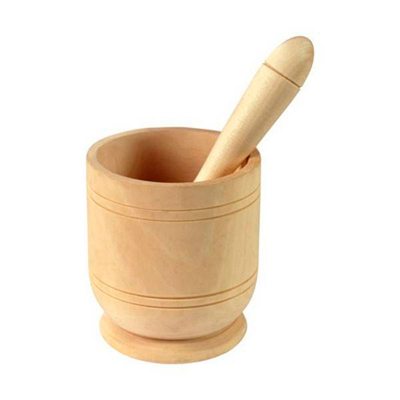 Дерево – экологичный и неприхотливый в работе материал. Ступку сделана из липы, её можно расписать яркими акриловыми красками, покрыть лаком – глянцевым, матовым или с эффектом кракелюр, оформить технике декупажа либо обработать воском для создания винтажного эффекта и защиты от влаги.