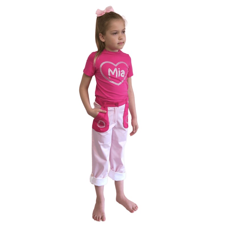 Футболка Mia цвета фуксия с коротким рукавом и серебристым принтом в виде сердца. Девочки любят этот цвет.