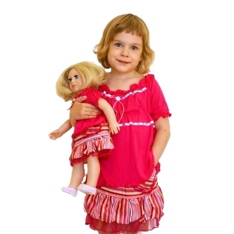 На день рождения племянницы я подарила куклу Мия. А на Новый год красивой девочке решила сделать еще один оригинальный подарок – это комплект одежды для девочки и такой же комплект одежды для куклы. Восторгу не было предела. Комплект состоит из яркой футболки розового цвета и красочной юбочки. Для куколки аналогичный комплект. На девочку ростом 116, на всякий случай, решила купить одежду с запасом размера 122. И не прогадала. Туника, как мне показалось, немного маломерит. Качество одежды очень хорошее, трикотаж плотный, не линяет, не садится после стирок, а главное, очень яркие и сочные розовые цвета. Девочка осталась очень довольна подарком. В таком необычном наряде и в компании с любимой куколкой будет всегда в центре внимания. Сама кукла Мия очень нравится и нам взрослым, и девочке. Сегодня трудно в магазинах найти достойную куколку, в основном популярностью пользуются Барби и ее аналоги, а хотелось бы приобрести необычную и милую подружку. Без труда нашли куколку Мия в нашем любимом интернет-магазине «Игры и игрушки». В каталоге представлено несколько кукол и в широком ассортименте есть одежда и для девочки, и для куколки. Легко можно подобрать подходящий образ и наряд.