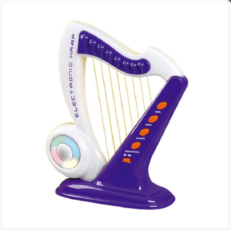 Арфа — древнейший струнно-щипковый музыкальный инструмент, который имеет треугольную форму и состоит из следующих составных элементов: корпус, расширяющийся к низу, около метра высотой, колонна соединяет концы рамы и корпуса, колковая рама с закреплёнными на ней струнами (от 46 шт.), основание арфы. Различаются несколько разновидностей инструмента: валийская, андская, ирландская, кельтская, леверсная, педальная, электроарфа. Игрушки максимально приближены к оригиналу, учтены все составляющие этого музыкального предмета. Маленькие модели позволят ребёнку почувствовать себя настоящим музыкантом.