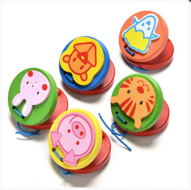 Сейчас некоторые производители выпускают кастаньеты специально для детей. Кастаньеты ручной работы, созданные ремесленниками "Мастерской Сереброва", изготовлены из натурального дерева, имеют оригинальный и неповторимый рисунок на внешней стороне каждой ракушки. Размер кастаньет примерно 5 см, яркий и удобный шнурочек позволяет закрепить музыкальный инструмент на ручке маленького музыканта. Краски использованы нетоксичные, на водной основе. Игрушка совершенно безопасна для ребёнка. Кроме того, розничная цена на такой ударный инструмент настолько низкая, что это делает игрушку доступной для любой категории покупателей.