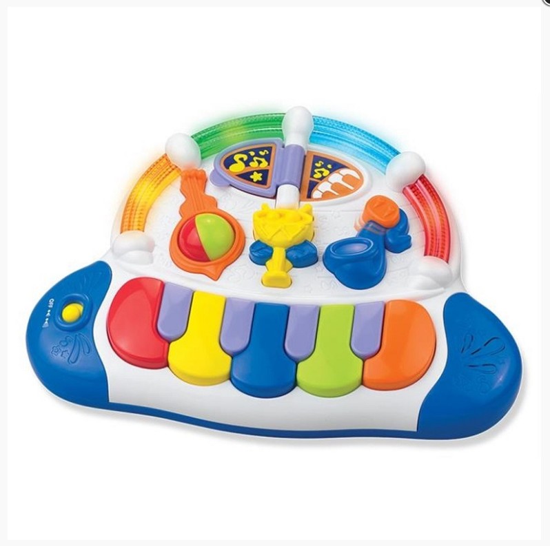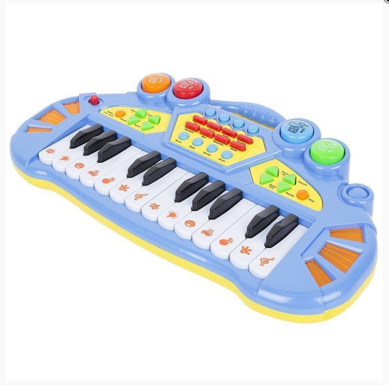 Пианино в игрушечном исполнении весьма популярно. Многочисленные компании как российские, так и зарубежные производят этот музыкальный инструмент в разных вариациях. Shantou выпустила яркую и привлекательную игрушку с небольшим дисплеем и клавишами, оснащённую музыкально-световыми эффектами. Производителю Happy Kid принадлежит пианино с большими разноцветными клавишами, при нажатии на которые воспроизводятся разные ноты. Компания JoyToy выпускает детский синтезатор "Пианино знаний", сделанный в форме веселого жирафа для детей старше одного года. Sassy выпустила развивающую погремушку в форме пианино со звуковыми и световыми эффектами для малышей от 6 месяцев.