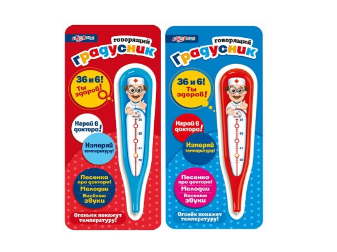 Яркий дизайн, удобная форма и простое управление делают игрушку подходящей для самостоятельных игр и ролевых занятий. Музыкальная игрушка «Говорящий градусник» станет полезным и интересным дополнением детской игровой коллекции.