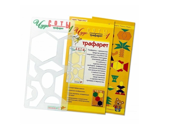 Трафарет "Чудо-Соты 1" — это поле из прозрачного материала с вырезанными отверстиями под элементы игры "Чудо-Соты 1. Трафарет располагают на листе бумаги и передвижением его совмещают выбранные элементы для создания фигур и образов. Таким образрм нарабатываются графические навыки, точность мелких движений, координация "глаз-рука", произвольность зрительного и слухового внимания, аналитические способности, речь. В наборе имеются методические рекомендации по работе с трафаретом. Предназначено для детей 3–10 лет.