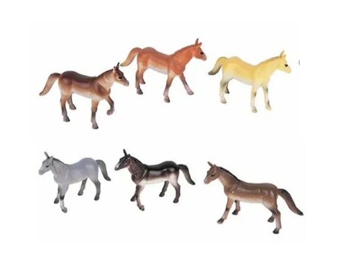 В набор входят 6 фигурок лошадей, выполненных с разной окраской и детализацией. Фигурки имеют удобный размер для детских рук, устойчиво стоят и подходят для разнообразных игровых сценариев.