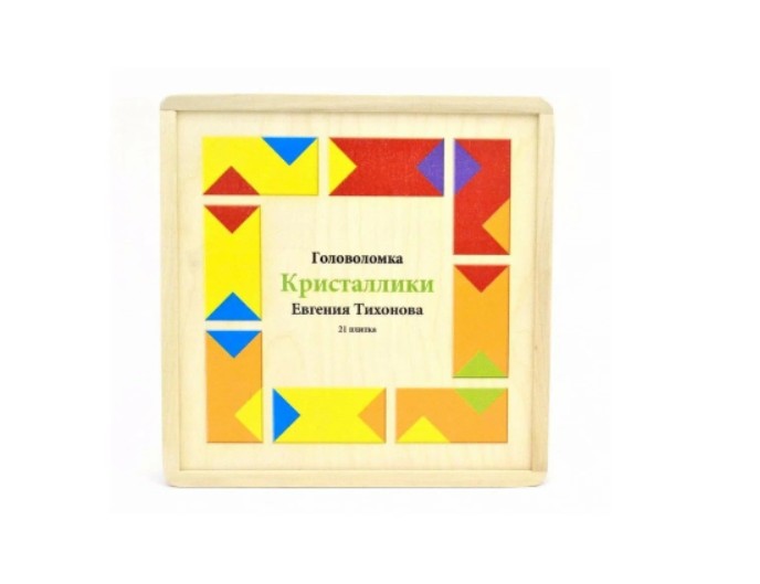 Головоломка «Кристаллики» Евгения Тихонова, 21 плитка, ТМ «Царицынская игрушка» — это деревянная логическая игра, развивающая пространственное мышление, внимание и способность к анализу. Игра основана на принципе составления различных фигур из набора геометрических элементов.