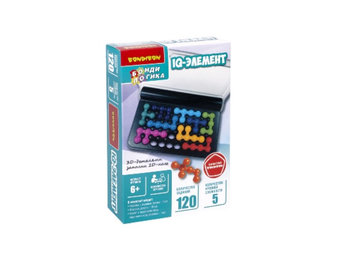 IQ-Элемент — логическая головоломка из серии БондиЛогика от Bondibon, предназначенная для детей от 6 лет и взрослых. Игроку предстоит расположить элементы на игровом поле так, чтобы получить правильную комбинацию в соответствии с заданием.