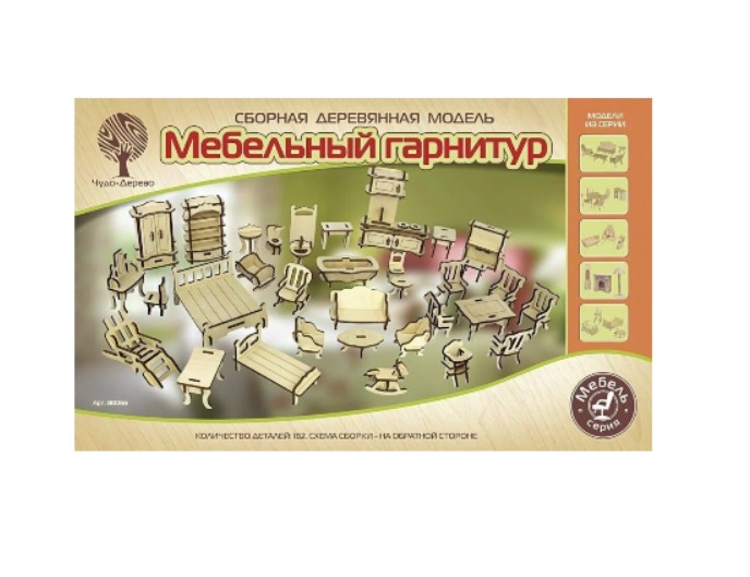 Натуральное дерево, точная лазерная резка и качественная подгонка элементов делают модель безопасной и удобной в сборке. Сборная модель «Мебельный гарнитур» отлично подходит для домашних игр, занятий в детском саду и творческих кружках, делая игру с кукольным домиком более увлекательной и разнообразной.