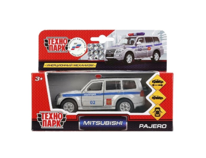 Инерционная металлическая машинка полиции ДПС «Mitsubishi Pajero», ТМ «Технопарк»