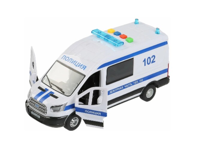 Инерционная металлическая машинка полиции «Ford Transit», световые и звуковые эффекты, ТМ «Технопарк»