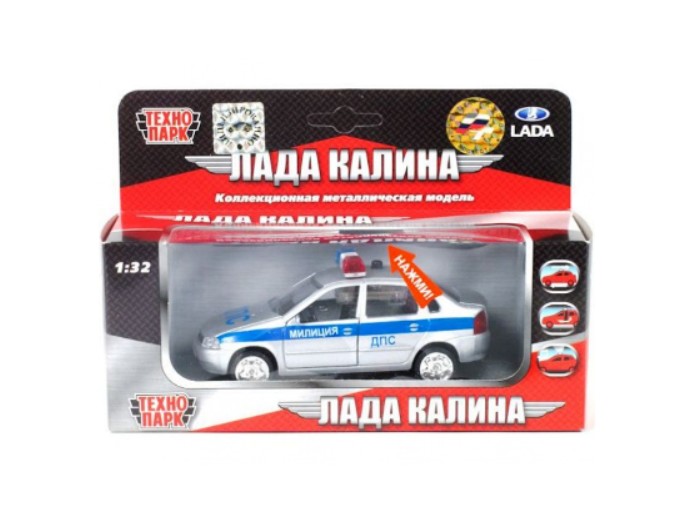 - Инерционная металлическая машинка полиции «Lada Kalina», световые и звуковые эффекты, ТМ «Технопарк»