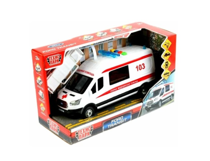 Инерционная пластиковая машина скорой помощи «Ford Transit» со световыми и звуковыми эффектами, ТМ «Технопарк» предназначена для детей от 3 лет и старше. Это реалистичная модель медицинского спецтранспорта, выполненная из прочного пластика и оснащенная инерционным механизмом, благодаря которому машина самостоятельно едет вперед после легкого толчка. Световые и звуковые эффекты делают игровой процесс более динамичным и увлекательным, позволяя ребенку разыгрывать сюжетные сценки, связанные с работой службы скорой помощи. Детализированный дизайн с характерной медицинской окраской усиливает эффект реализма. В процессе игры развиваются воображение, внимание, мелкая моторика и координация движений. Инерционная пластиковая машина скорой помощи «Ford Transit» ТМ «Технопарк» станет отличным подарком для любителей спецтехники и сюжетно-ролевых игр.