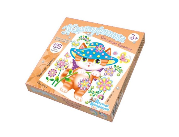 Набор для творчества “Котенок-озорник" аппликация бусинами, компания "Десятое королевство"