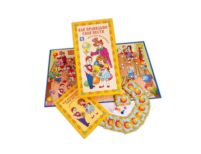 Настольная игра «Как правильно себя вести» компании «Новое поколение» предназначена для детей и представляет собой развивающую игру-ходилку с обучающими элементами, которая помогает познакомить ребенка с правилами поведения в различных жизненных ситуациях.