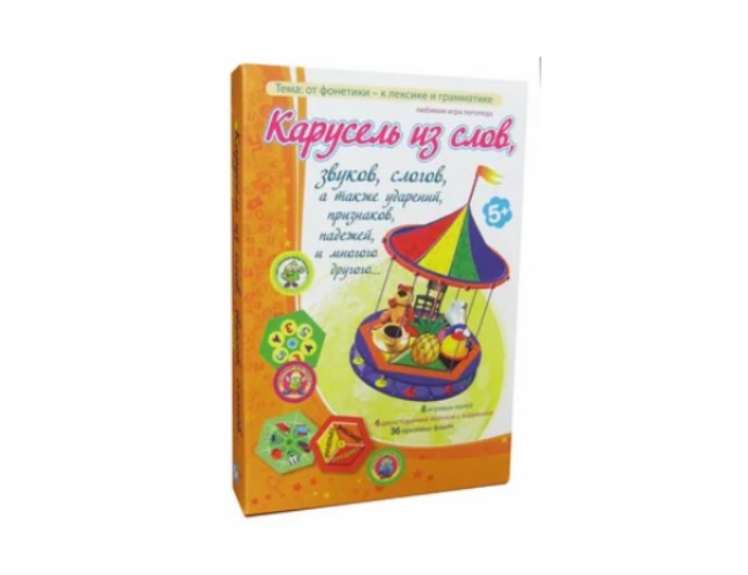 Карусель из слов, звуков, слогов… любимая игра логопеда — настольная игра-головоломка, созданная для детей от 4–5 лет и старше, а также для семейного досуга, занятий в детских садах, логопедических группах и развивающих студиях. Она помогает в игровой форме развивать речь, фонематический слух, внимание, словарный запас, умение выделять звуки в словах и составлять простые слоговые конструкции.