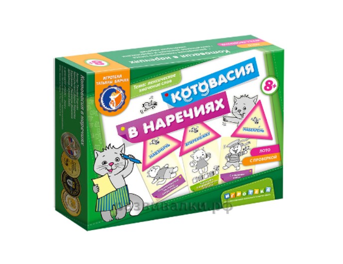 Котовасия в наречиях — настольная игра, разработанная для детей от 7 лет и старше, а также для семейного использования и школьных занятий. Игра помогает в увлекательной форме развивать языковые навыки, внимание, реакцию и умение работать в команде.