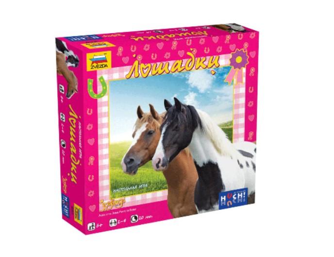 Настольная игра «Лошадки» компании «Звезда» предназначена для детей от 4 лет. Это семейная настольная игра-ходилка, в которой участники соревнуются в скорости и удаче, помогая своим лошадкам первыми добраться до финиша.