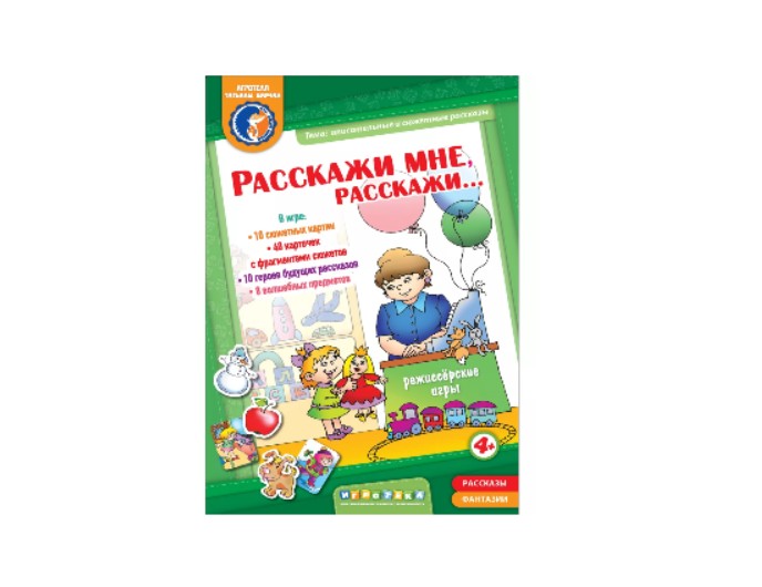 Расскажи мне, расскажи… — настольная игра-головоломка, созданная для детей от 4–5 лет и старше, а также для семейного досуга, занятий в детских садах, логопедических группах и развивающих студиях. Она помогает в игровой форме развивать речь, связное высказывание, воображение, словарный запас, внимание и умение строить логичные повествования.