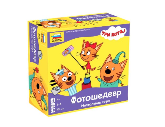 Яркое оформление, узнаваемые персонажи и простые правила делают игру понятной и интересной с первых минут. Настольная игра «Три кота. Фотошедевр» от компании «Звезда» подойдет для семейных игр, детских праздников и занятий в игровых зонах, а также станет отличным подарком для поклонников мультсериала.