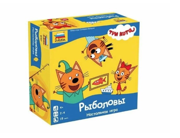 Настольная игра «Три кота. Рыболовы» компании «Звезда» предназначена для детей от 4 лет. Это семейная настольная игра на внимательность и удачу, созданная по мотивам популярного мультсериала, в которой игроки вместе с любимыми персонажами отправляются на веселую рыбалку.