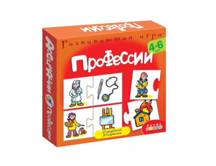 Развивающие пазлы «Профессии», издательство «Дрофа-Медиа» предназначены для детей от 3 лет и старше. Это развивающая настольная игра-пазл, которая в игровой форме знакомит ребенка с различными профессиями и их особенностями.