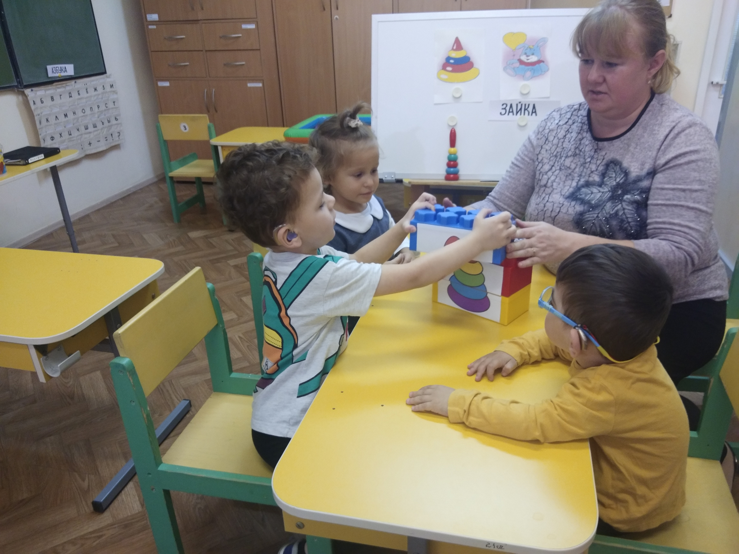 Коррекционные задачи: продолжать учить детей до конца удерживать внимание на лице сурдопедагога во время произнесения слова; побуждать детей к отражённому проговариванию; развивать зрительно-слуховое и слуховое восприятие; упражнять в умении прочитывать таблички-подписи при помощи дактилологии.