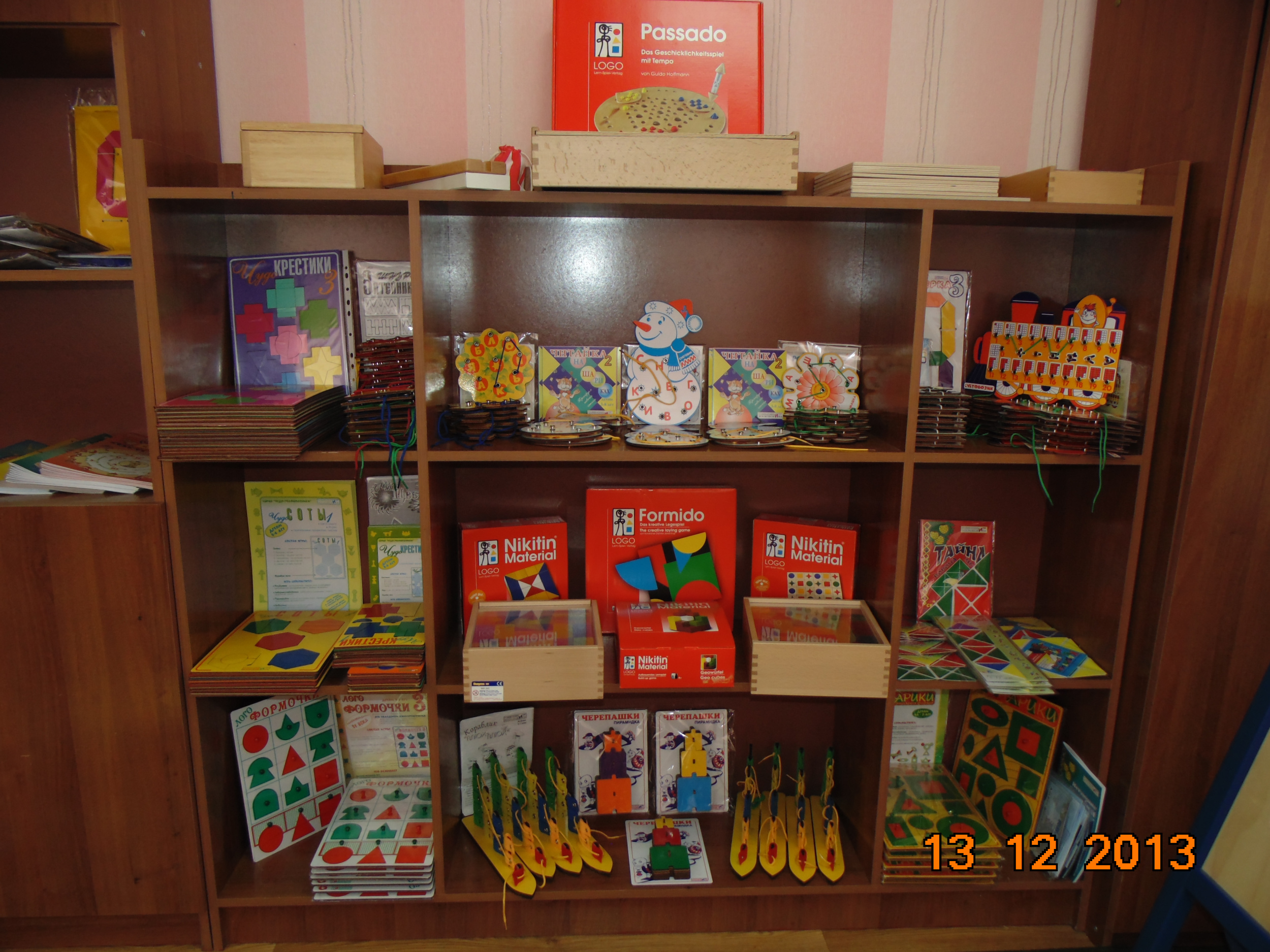 В этой игровой зоне подобраны игры и пособия, направленные на обогащение сенсорного опыта ребёнка, на развитие внимания, памяти, речи, мелкой моторики, логического мышления. Для её оснащения мы использовали кубики Никитина (наборы «Сложи узор», «Сложи квадрат», «Уникуб», «Кубики для всех», «Кубики логические») и развивающие игры В.В. Воскобовича «Игровая технология интеллектуально-творческого развития детей 3-7 лет»: «Геоконт», «Геовизор», коврограф «Ларчик», «Чудо-головоломки», «Прозрачный квадрат» и др. Все игры распределены в соответствии с возрастными особенностями детей дошкольного возраста.