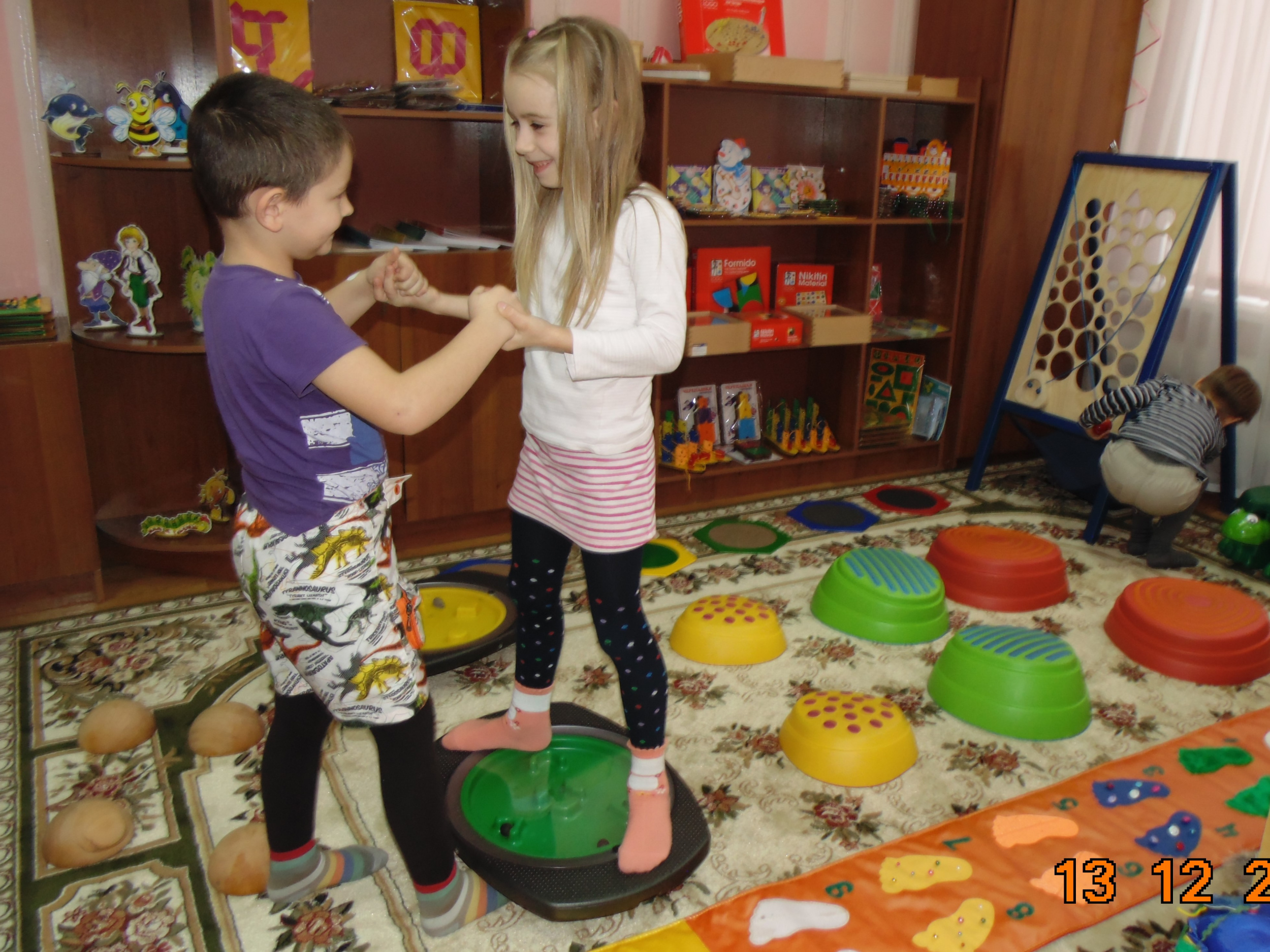 Игровые пособия этой зоны помогают развитию у детей пространственной ориентировки и координации движений, осознанию схемы собственного тела, формируют навык удержания равновесия. С их помощью удаётся раскрепостить скованных детей, снять мышечное напряжение, снизить излишнюю возбуждённость и даже агрессивность.