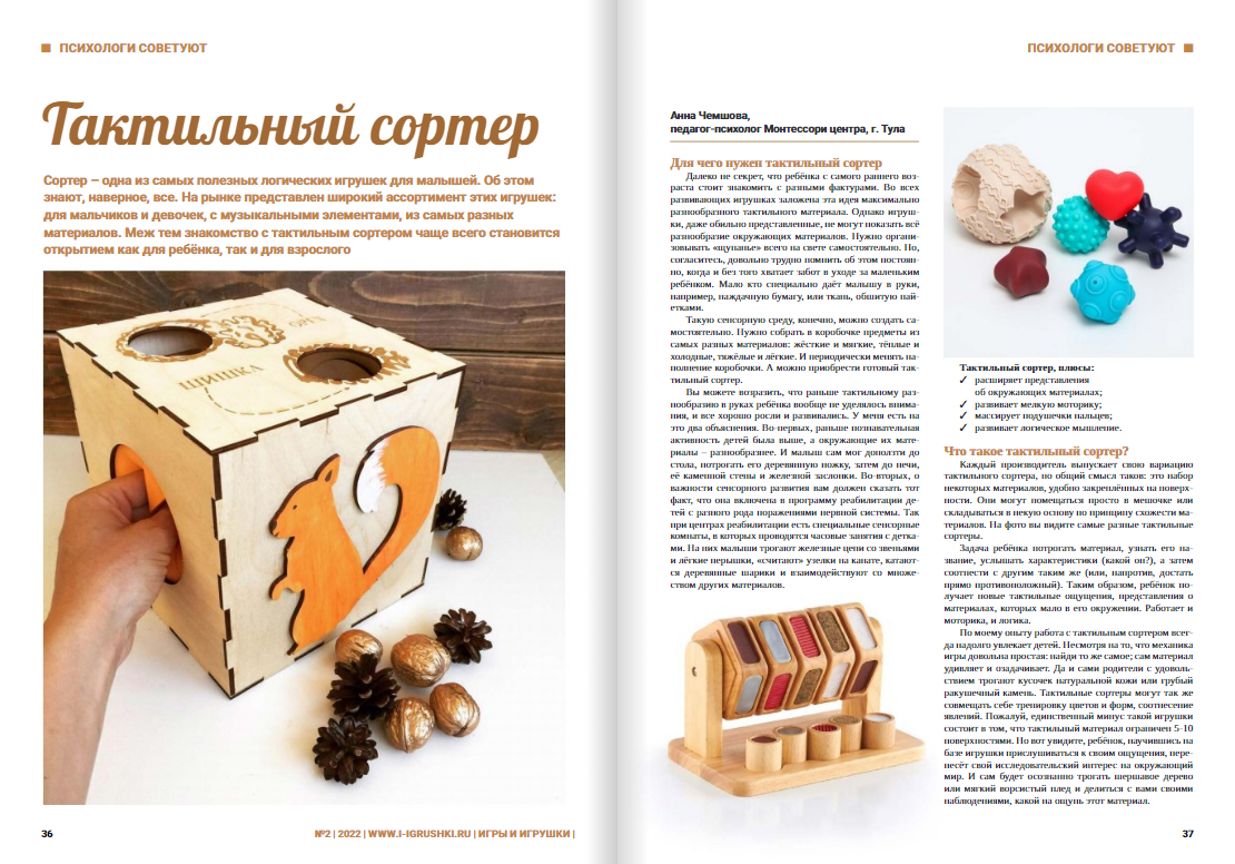 Прочитав новый выпуск журнала «Игры и игрушки», я отлично провела досуг и узнала много новой и полезной информации. Больше всего заинтересовали статьи про румбоксы и игрушки из ваты. С сыном мы с удовольствие прошли тест про школу, эта тема очень актуальна для нас. Порадовало большое количество новогодних заданий для детей. С нетерпением жду новый весенний выпуск журнала!