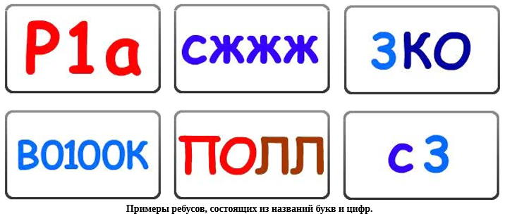 Эти ребусы состоят из букв и картинок. Они являются самыми простыми, их могут решать дети, ещё не умеющие хорошо читать. Чтобы решить такой ребус, нужно правильно подобрать название картинки. Например, на Рис. 2 изображены буква «Г» и картинка, у которой может быть два названия: «ЦВЕТОК» и «РОЗА». Для решения ребуса подходит второе название.3. Ребусы, состоящие из названий букв и цифр