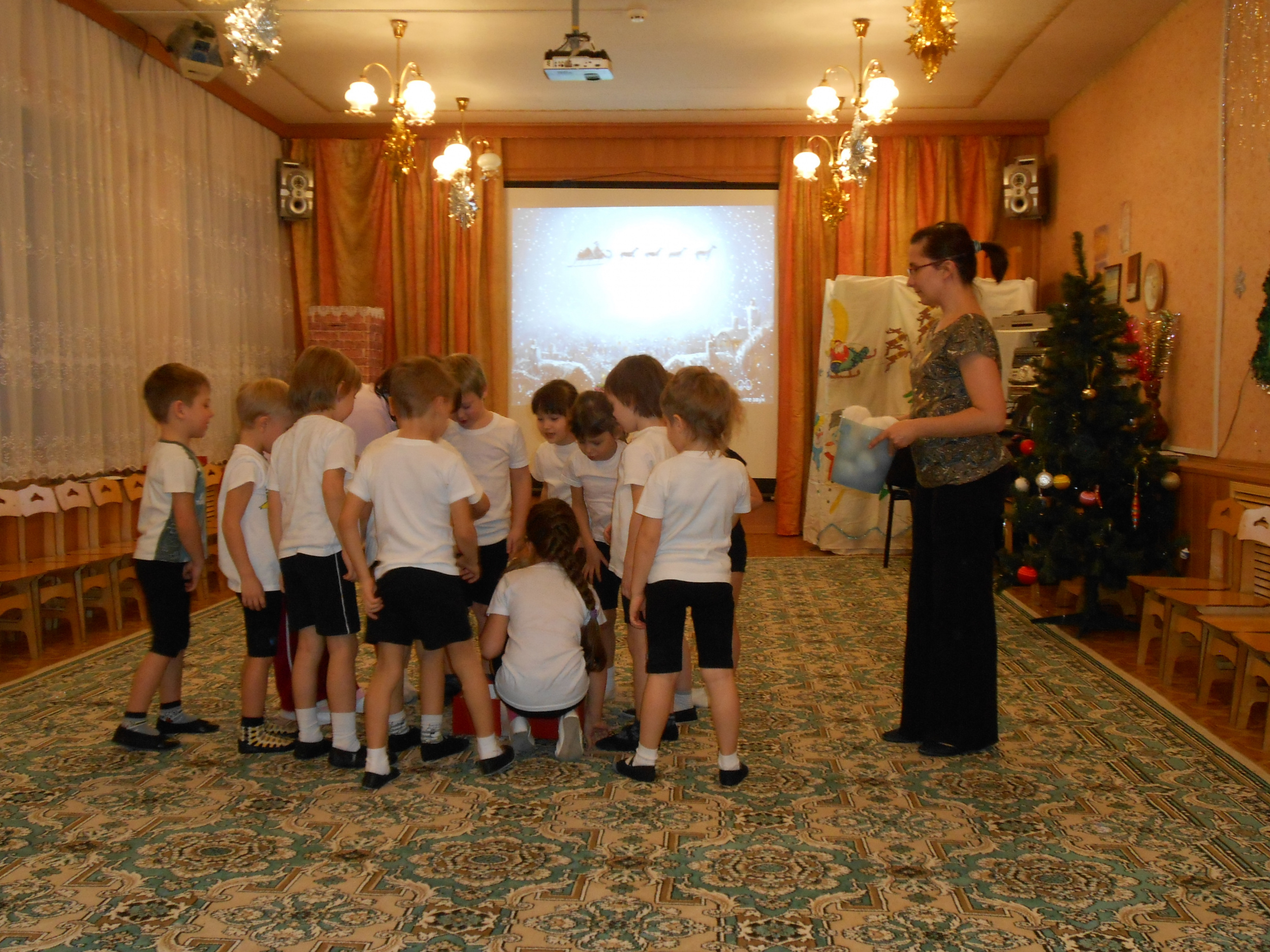 - Предварительная работа: чтение художественной литературы о Деде Морозе (А. Усачёв «Дед Мороз из Дедморозовки»), чтение и разучивание стихотворений и песен про Новый год, беседы о традициях празднования Нового года, проведение эстафет.